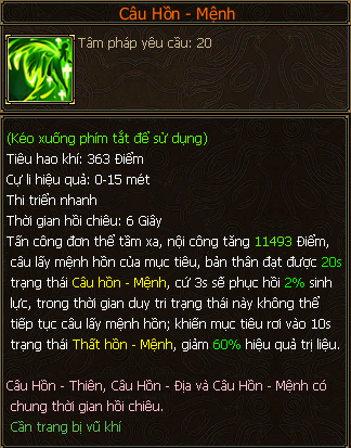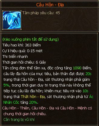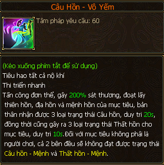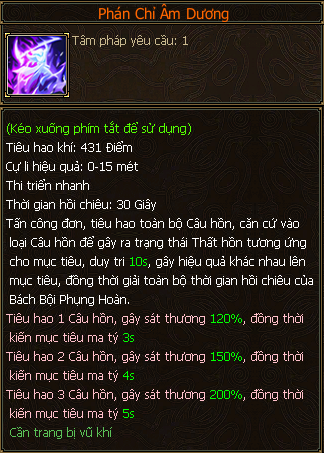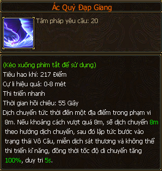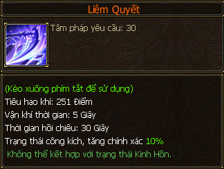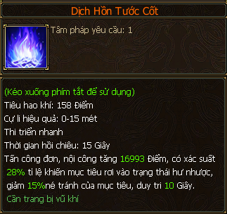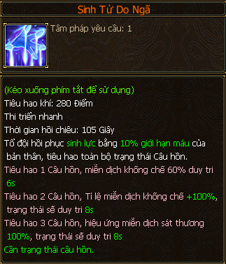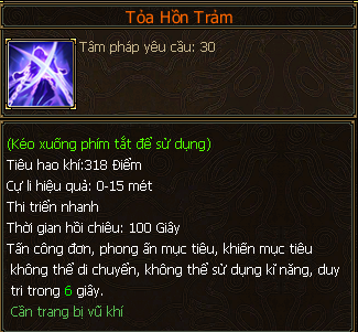 Phong Huyệt: không thể di chuyển, không thể sử dụng kỹ năng.