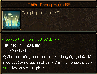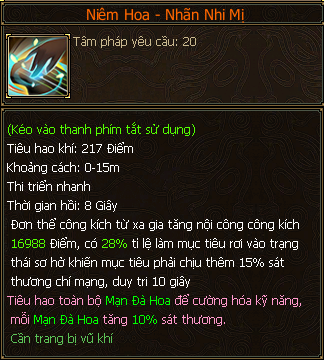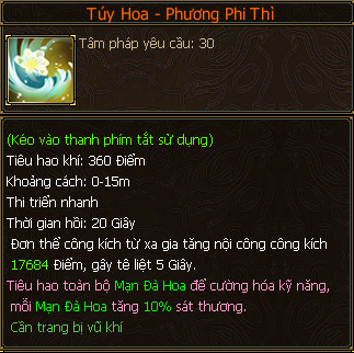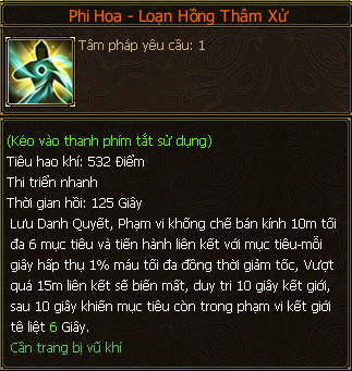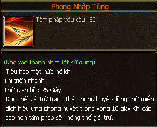 Phong Huyệt:khiến mục tiêu không thể cử động và dùng kỹ năng