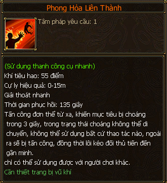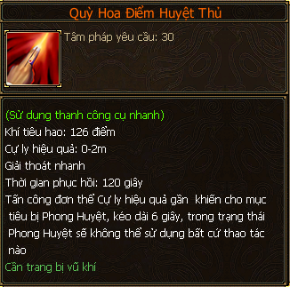 Phong Huyệt: không thể di chuyển, không thể sử dụng kỹ năng.